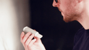 Users take asthma medication using an inhaler. The type of medicine changes from patient to patient based on their needs.